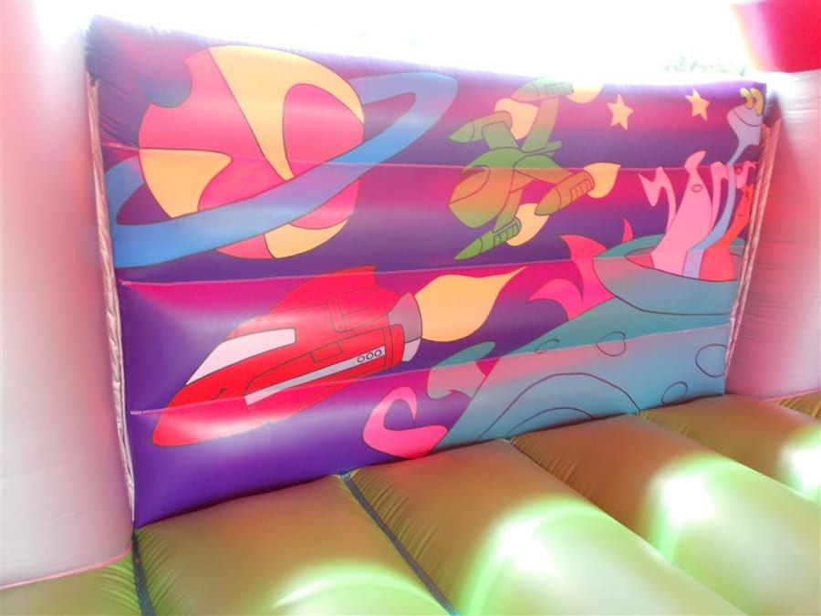 Suitable for aliens of all ages! Will you be jumping high enough to be whisked off to another planet or will you come back down to earth with a bump? Shower cover attached.