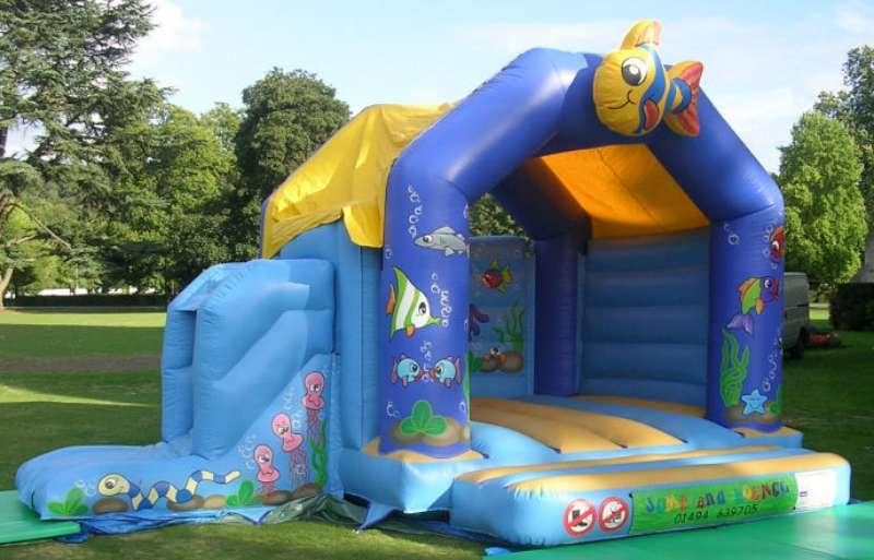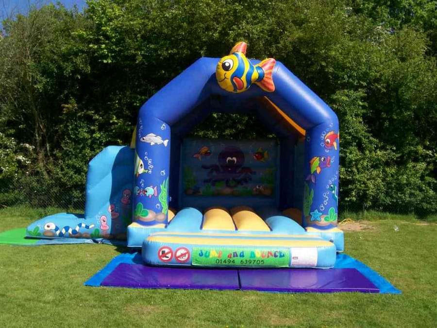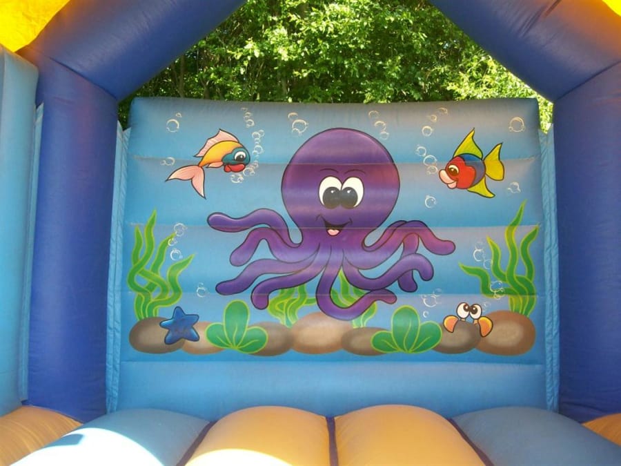 An underwater world awaits you on this colourful bouncy castle. With fish, octopus and other playful underwater creatures to bounce with under the sea this castle is an adventure waiting to happen! Of course if you need to "come up for air" then you can exit via the slide! Shower cover attached.