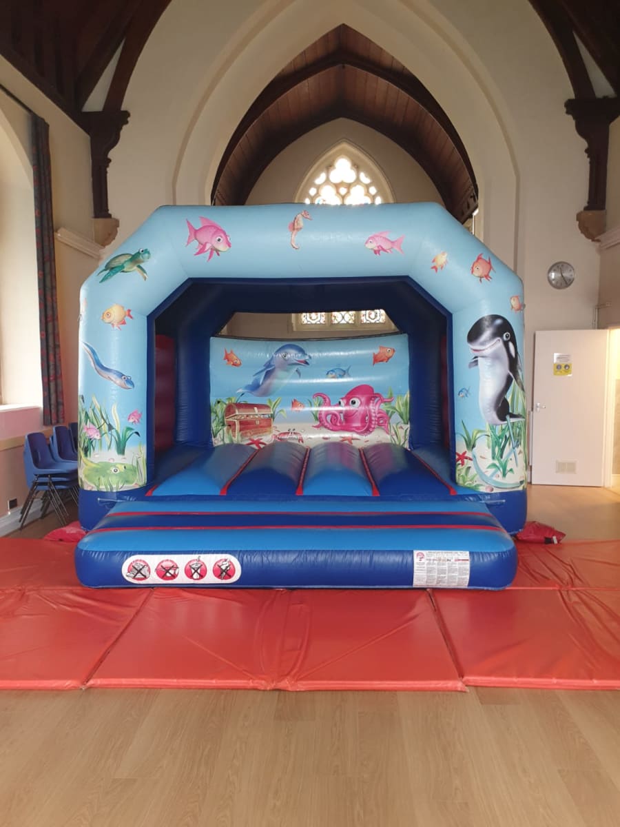 Bounce with the dolphins and fishes on this underwater bouncy castle and imagine your there under the sea